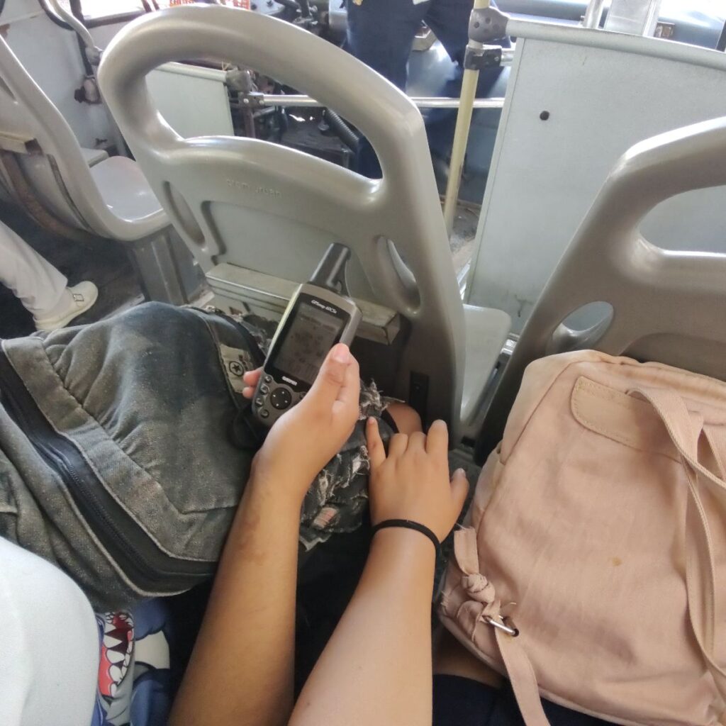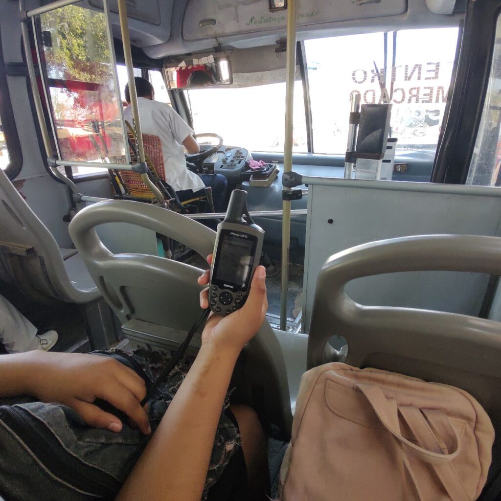 Keyli asumió el rol de coordinadora del trabajo. Se encargó de llevar un control ordenado del recorrido y de asegurar que siguiéramos correctamente las rutas asignadas. También fue responsable del uso del dispositivo GPS Garmin. Con este equipo, registró los waypoints de cada parada, tanto las normales como las del sistema Ko’ox, y mantuvo el seguimiento continuo de cada trayecto.