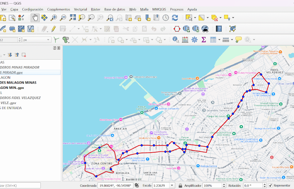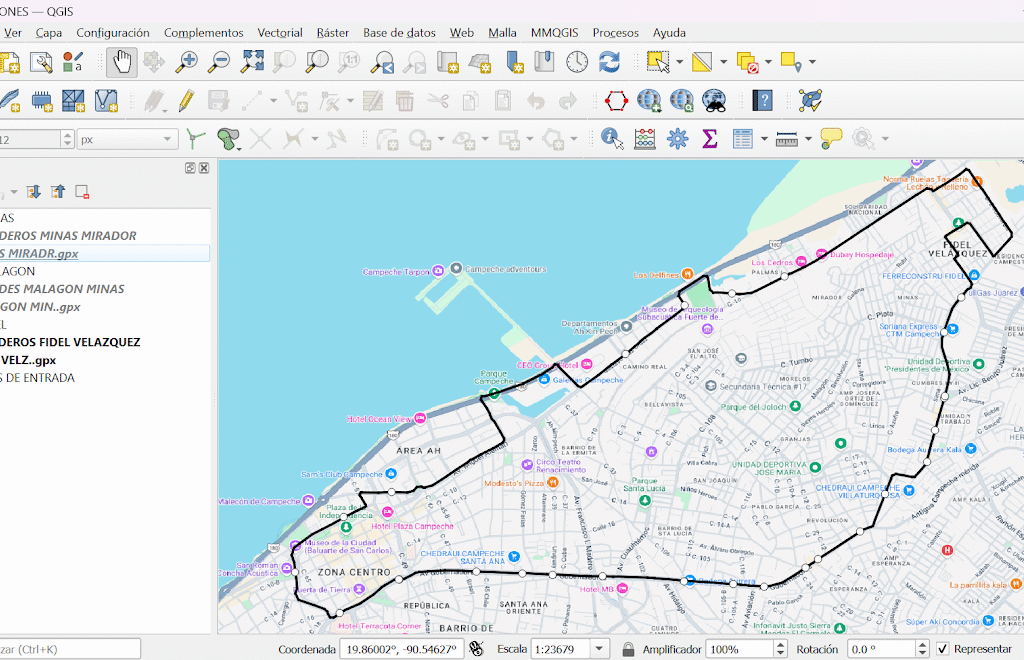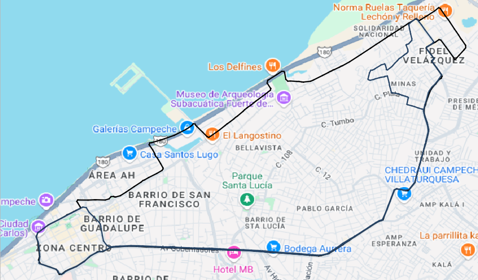 El objetivo de esta práctica fue trazar las rutas del transporte público Ko’ox en San Francisco de Campeche y ubicar sus paraderos principales. Con esta actividad, buscamos aportar información útil para quienes utilizan este medio de transporte en la ciudad.