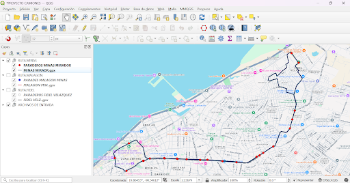 Por otro lado, esta práctica tiene un propósito muy importante, ya que contribuye a solucionar un problema real: la falta de información clara y accesible sobre las rutas y paraderos del transporte público urbano. Al digitalizar las rutas de los camiones Ko’ox y sus paraderos oficiales, estamos recopilando datos que pueden ser utilizados para que los ciudadanos conozcan visualmente por dónde pasan los autobuses y en qué lugares pueden abordarlos.